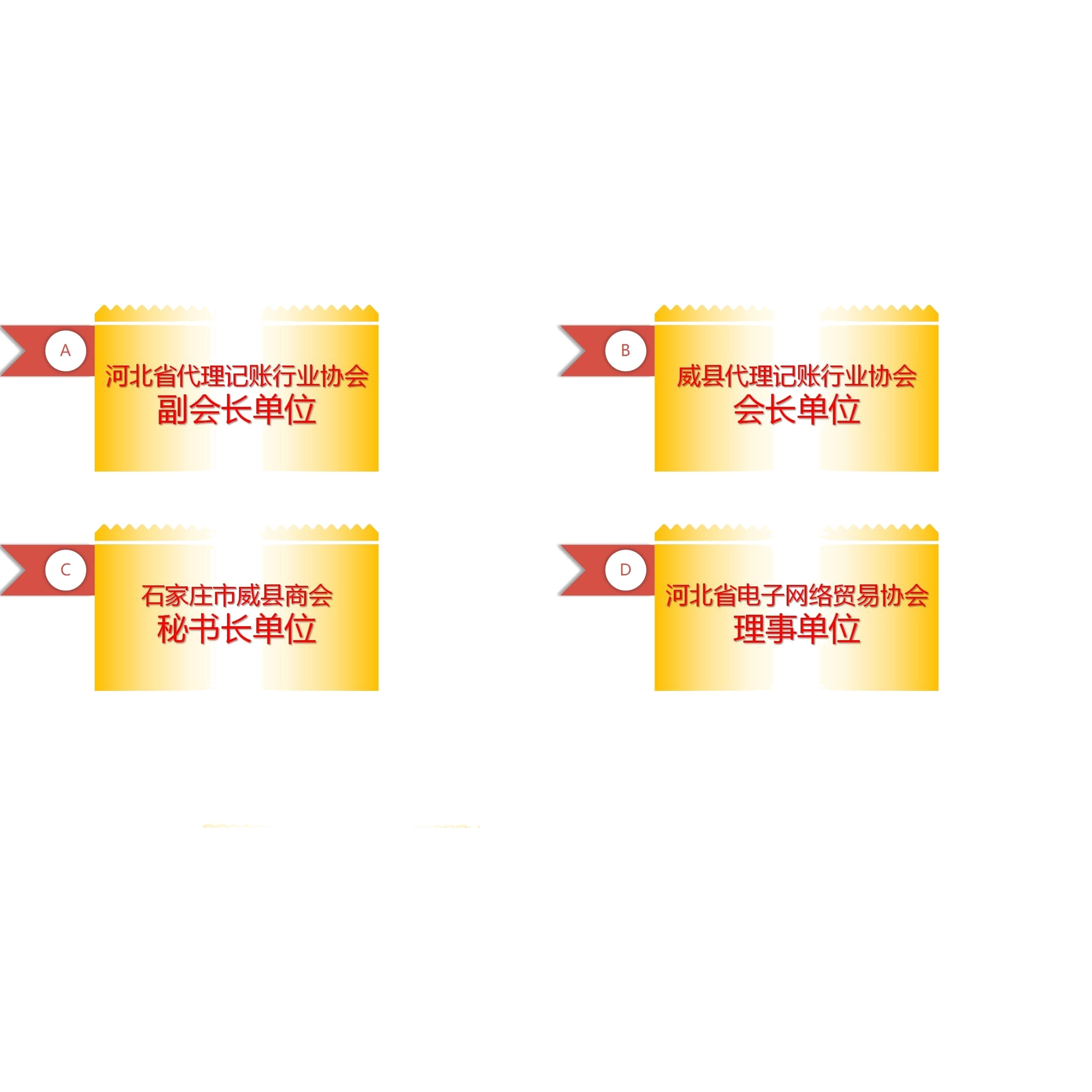 慧诚河北商务服务集团旗下有会计服务.国际贸易服务.人力资源服务.工程咨询.知识产权五个板块。自2011年成立以来,已在河北各地设办事处,业务覆盖全省。河北省代理记账工作规范示范单位、多家公司是“TSC5级”涉税服务机构,慧诚会计服务是河北省代理记账行业协会副会长单位,威县代理记账行业协会会长单位,河北省电子网络贸易协会理事单位,威县县域税企联建互协单位,建设银行省市县三级合作单位。